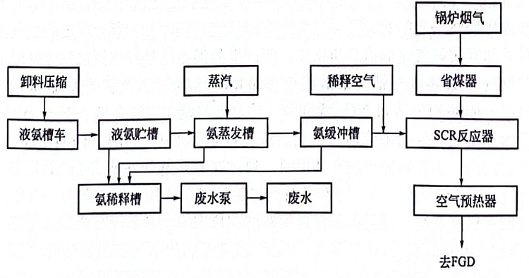 脫硝后煙氣經(jīng)空氣預熱器熱回收后進入靜電除塵器。然后經(jīng)FGD裝置脫硫排放。每臺鍋爐配設(shè)一套scr反應器,每兩臺鍋爐共用一套液氨貯存和供應系統(tǒng)。