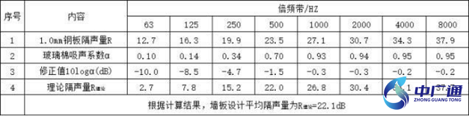 據(jù)上述計(jì)算,隔音板理論平均隔聲量不低于 22. 1dB ,滿足設(shè)計(jì)要求。