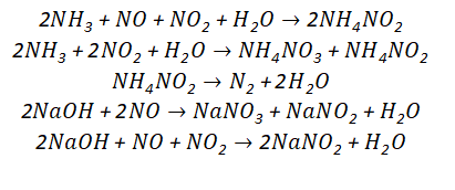首先是氨在氣相中和N 、水蒸氣反應,然后再與堿液進行吸收反應。反應式如下: