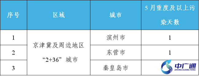 5月重點區域出現重度及以上污染天的城市及具體天數見附表3。