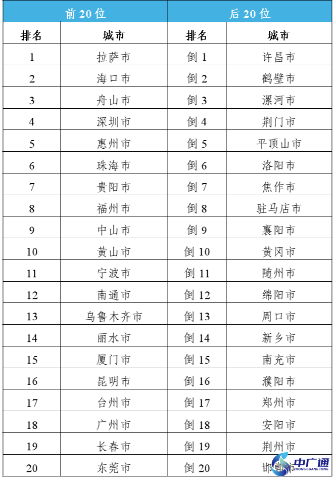 | 10 | 珠海市 | 倒10 | 晉城市 |